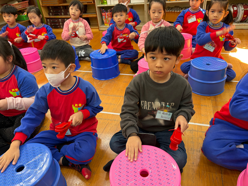 今天使用的樂器有刮胡和糖果棒棒糖鼓